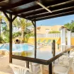 To the side is an outdoor dining area, covered by wooden gazebo, perfect for 8 people to organize lunches or dinners all together, or even better spend the best night hours with the magical lunar atmosphere.