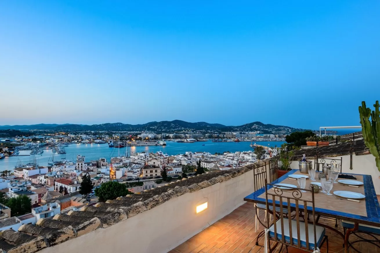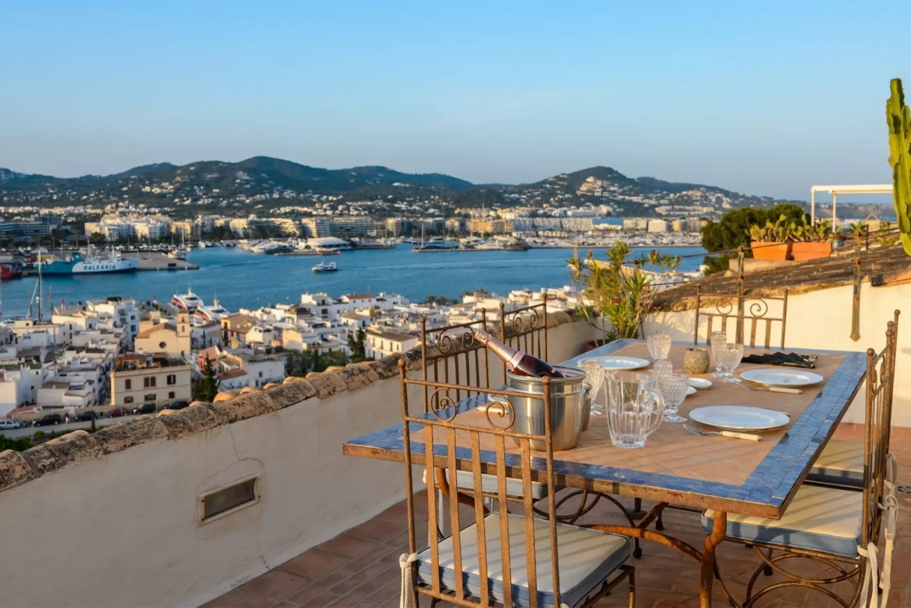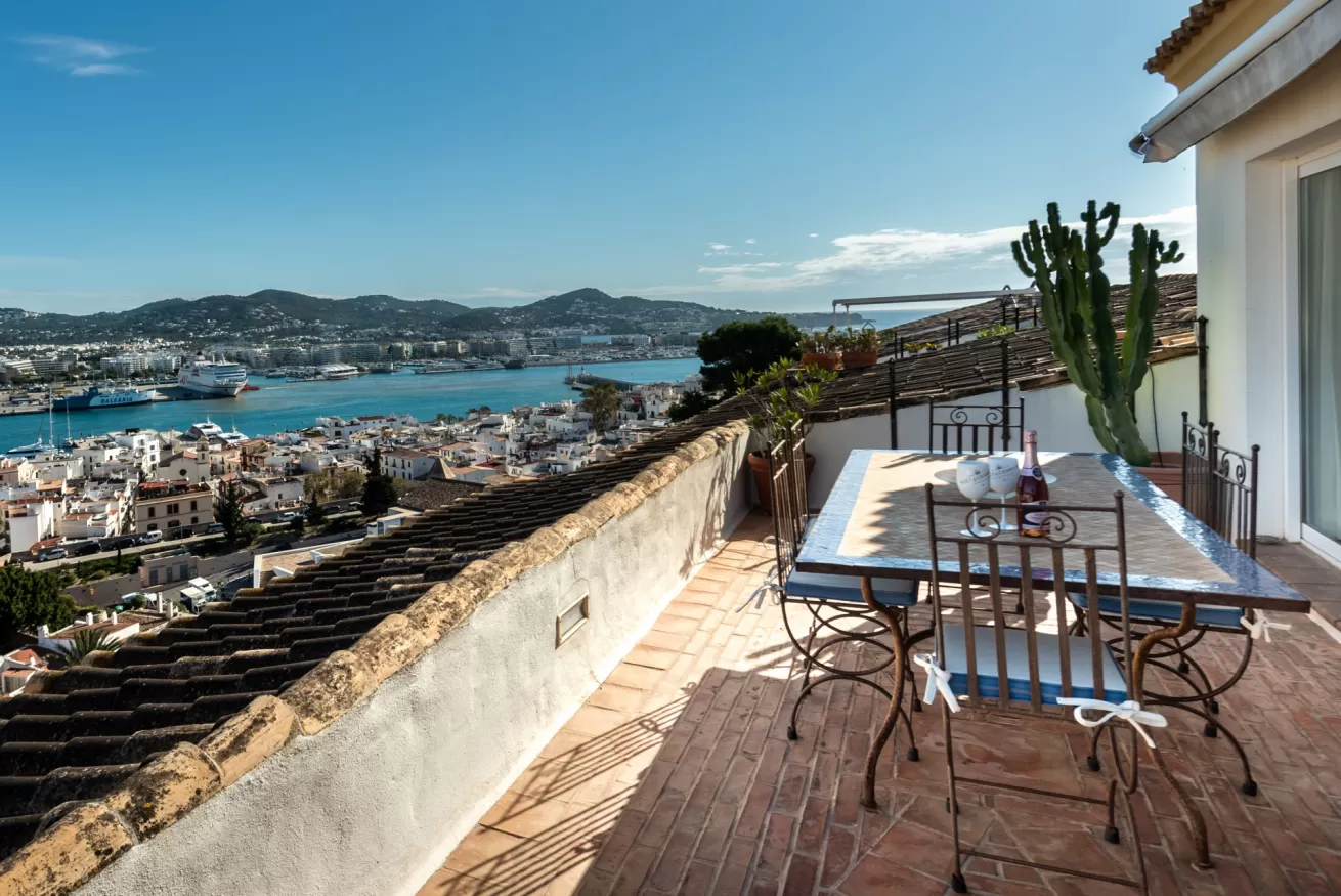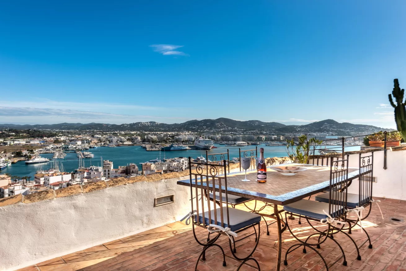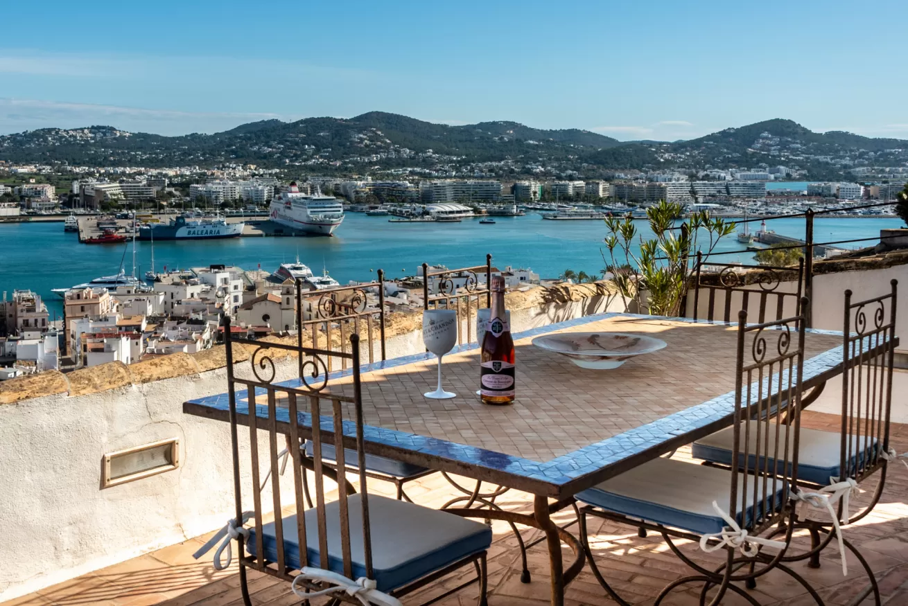 You can wake up in the morning and start the day with a wonderful view of the sea from the highest point of Dalt Vila, take a walk in the center, have a cocktail in one of the many bars in the streets of the Port or opt for a glass of wine at home, by the pool.