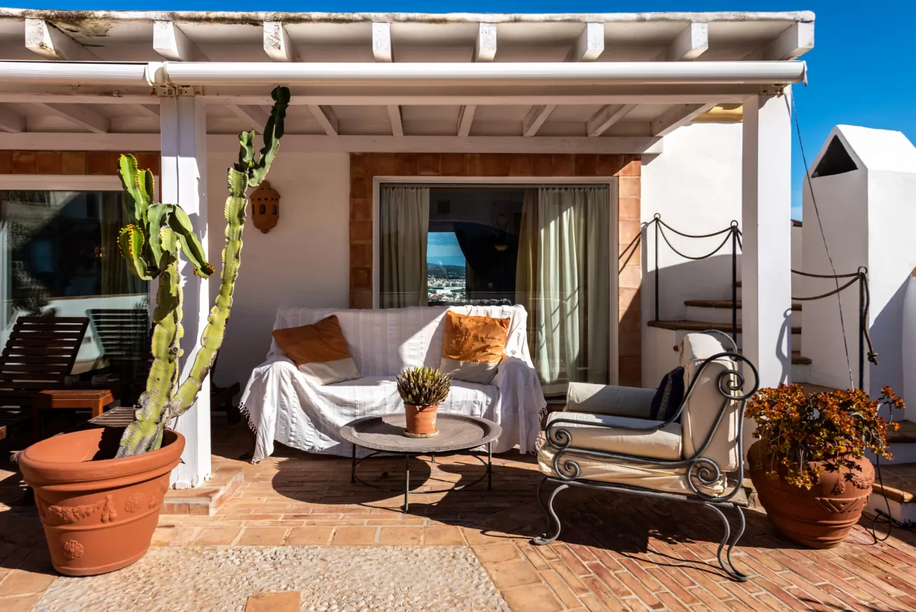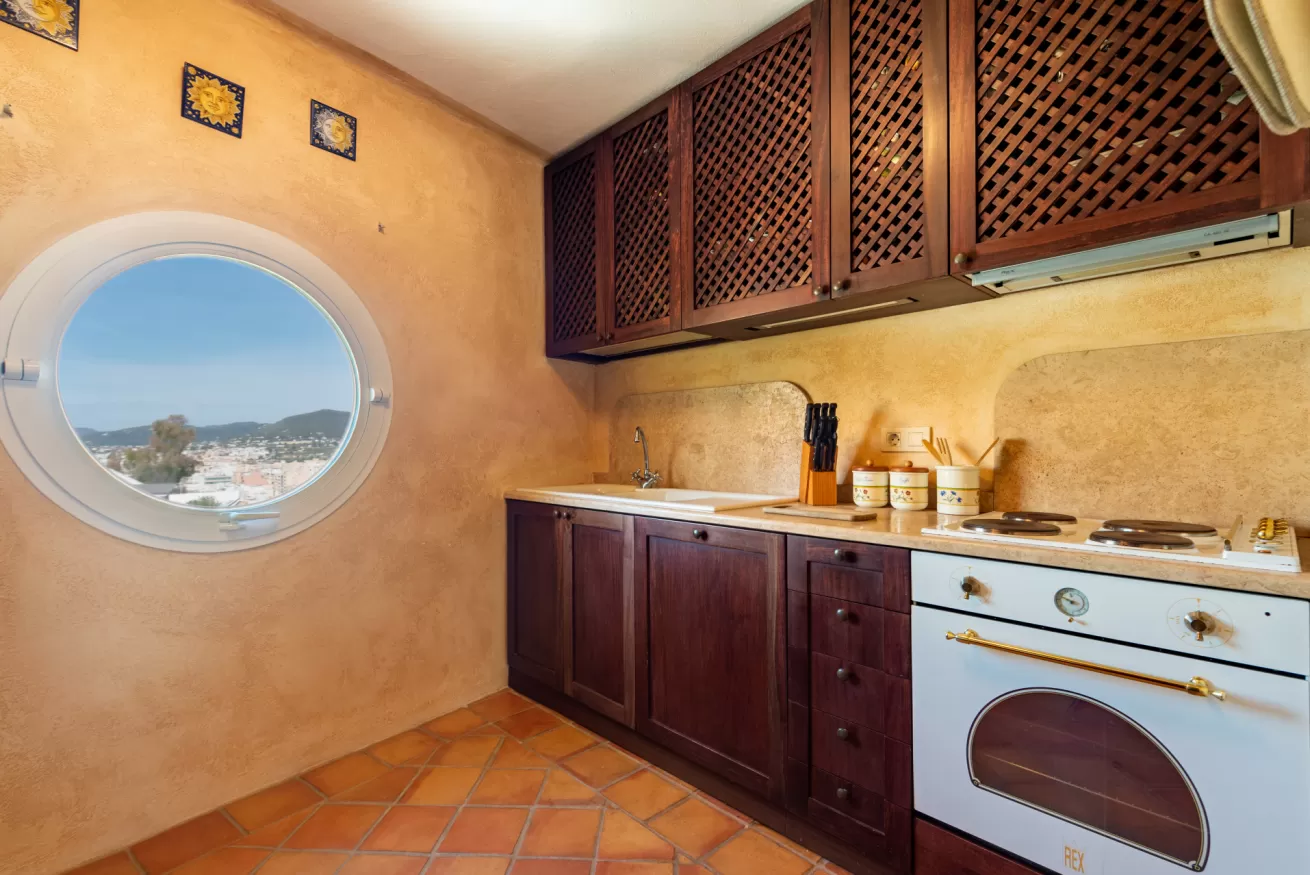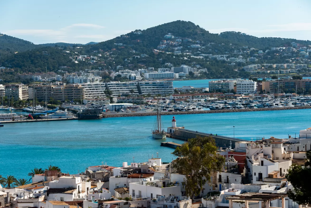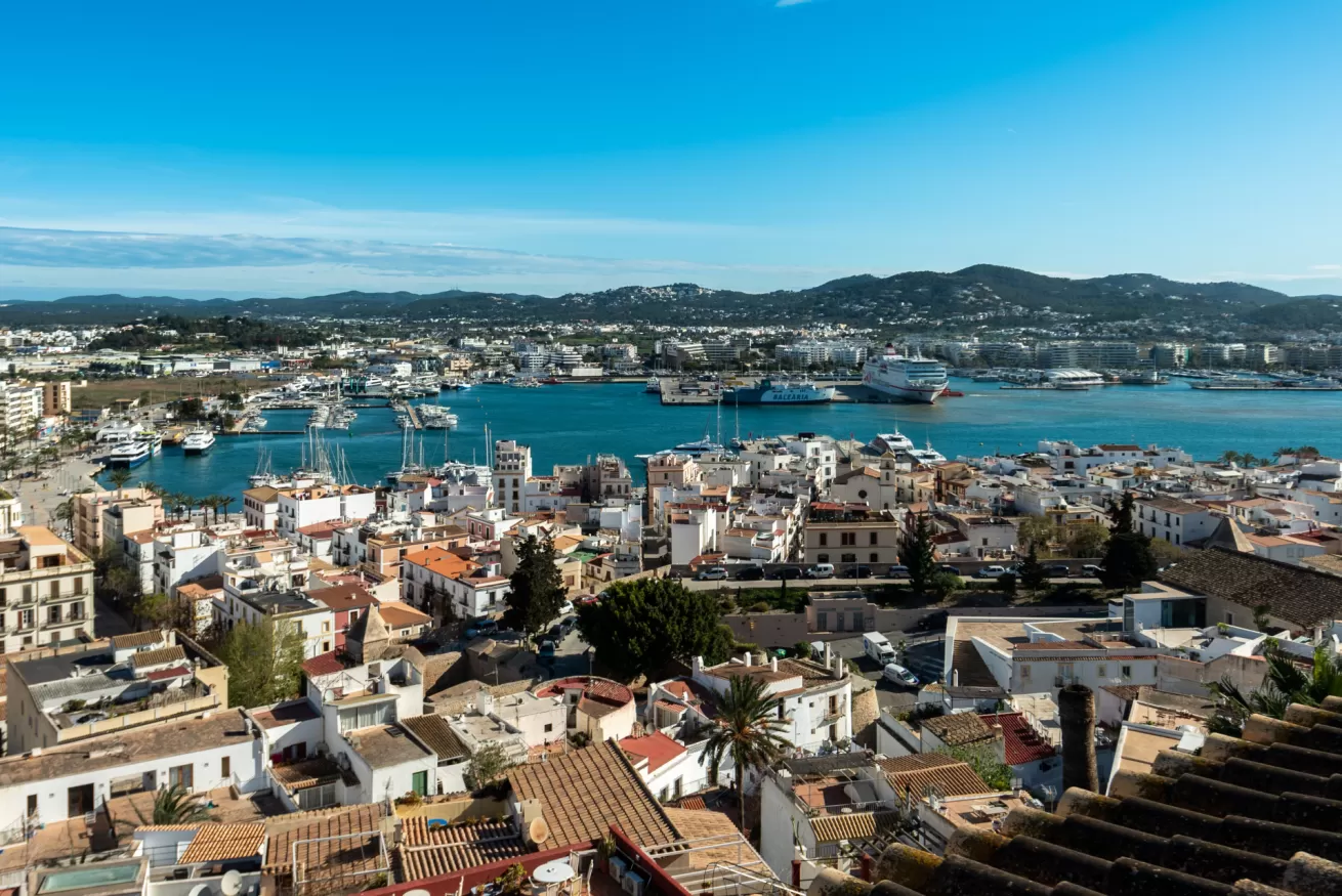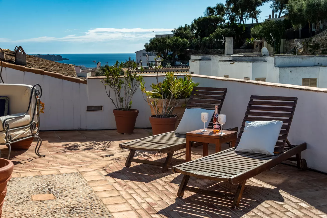 You can wake up in the morning and start the day with a wonderful view of the sea from the highest point of Dalt Vila, take a walk in the center, have a cocktail in one of the many bars in the streets of the Port or opt for a glass of wine at home, by the pool.