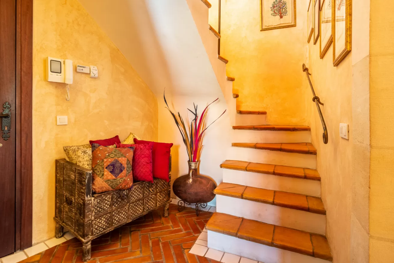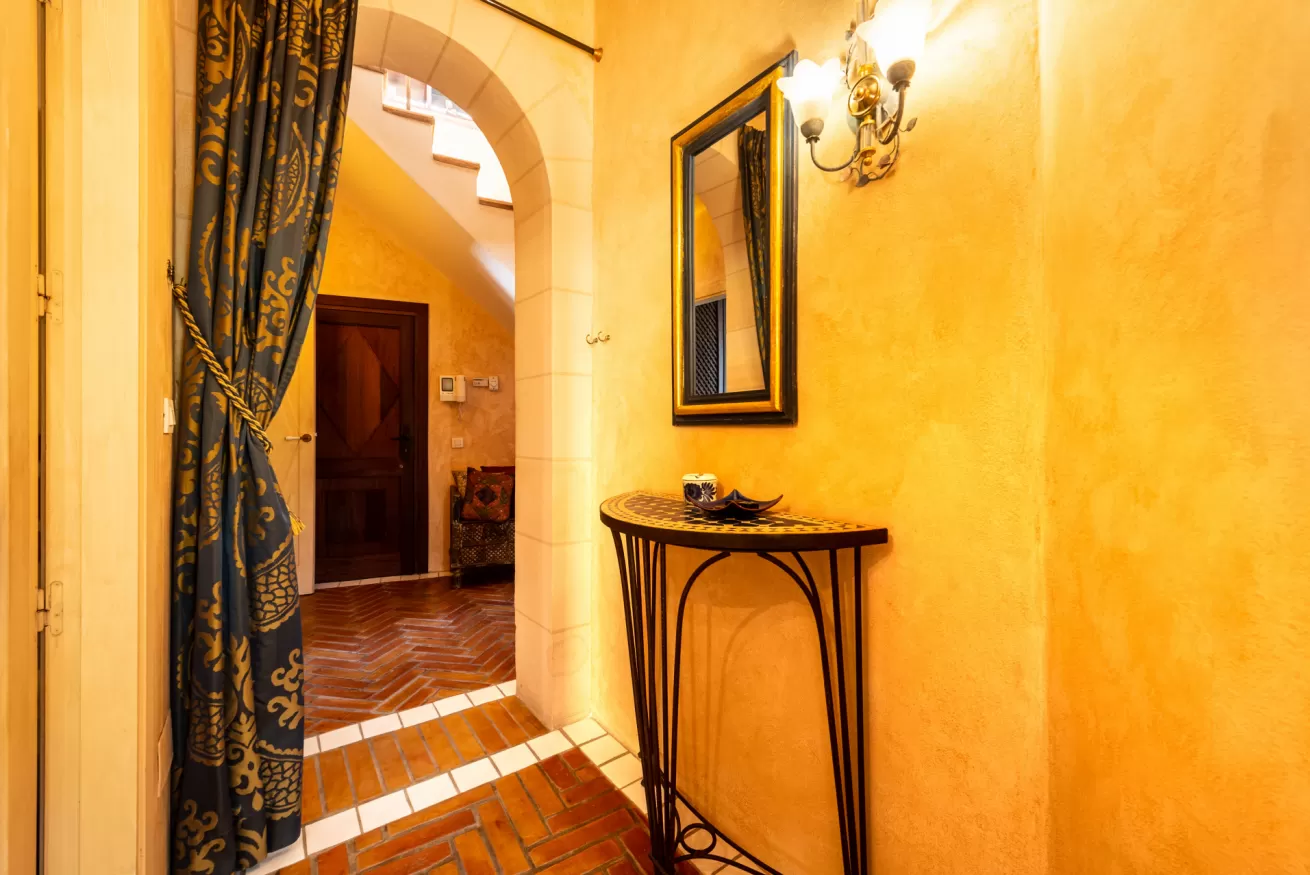 The truly unique experience begins at the entrance, that’s preceded by a stone cave that exudes art and tradition of the place. A picture within a picture! Through the cave of the entrance is possible to access the apartment, distributed on two floors.