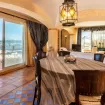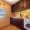 The design of the entire house follows the warm colors and earth tones, which create a warm and cozy atmosphere in contrast to the colors of the sea and sky that dominate the rest of the room thanks to the presence of large windows overlooking breathtaking views. Even in the kitchen there is a round window from which it is possible to catch a glimpse of an incredible view.